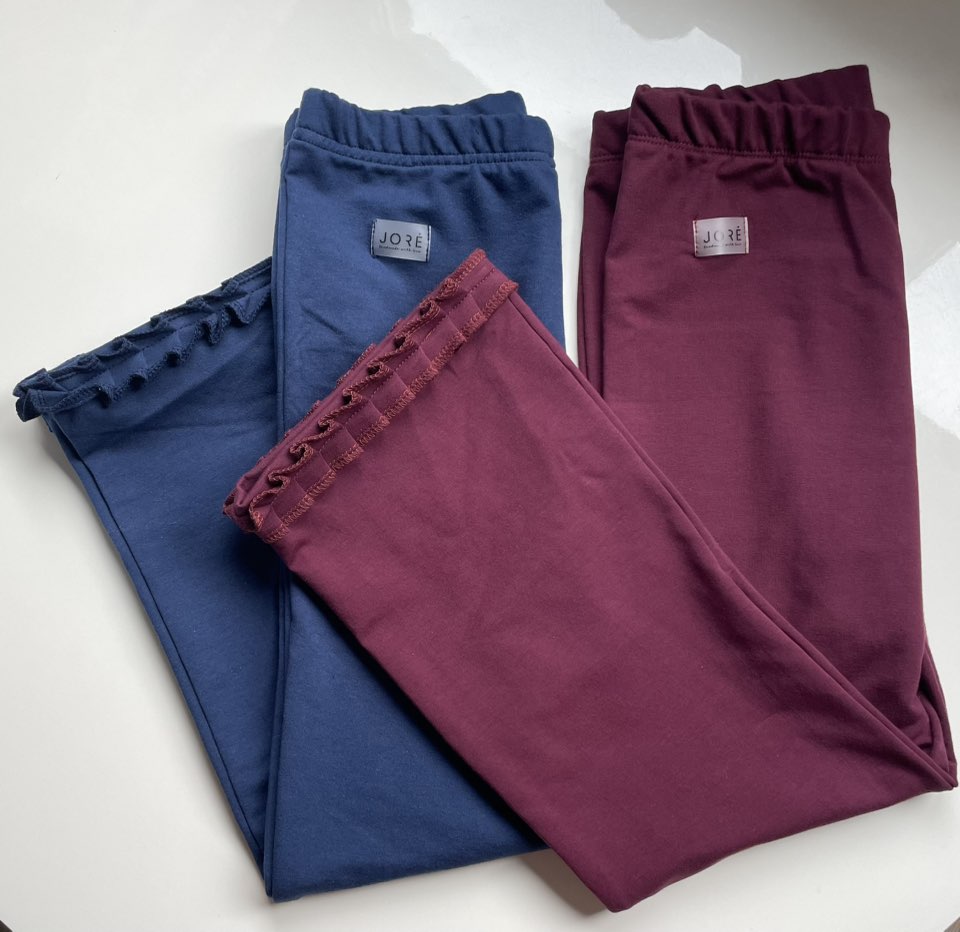 Kilpinio trikotažo platėjančios mergaitiškos kelnės.